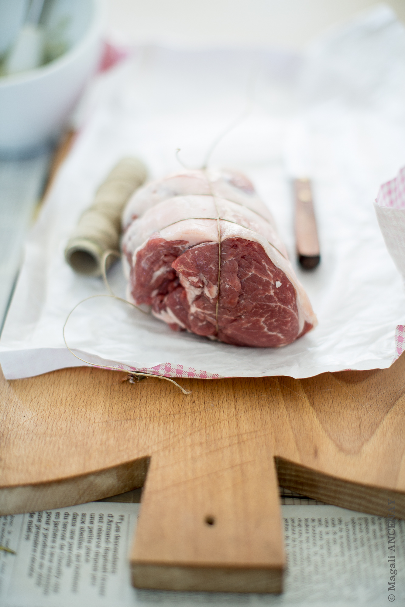 La semaine dernière, alors que je sortais d’une matinée passée aux Thermes d’Aix en Provence, je me suis rendue chez mon boulanger.Ce dernier travaille avec des méthodes ancestrales et surtout des matières premières Bio, au nom très évocateur « La Fabrique à Pains ». Accolé à cet établissement, se trouve la maison « Aix’Traits de Saveurs » avec un rayon boucherie hors du commun. Sur la vitrine écrit à la peinture blanche, « Agneaux des Prés Salés »…..Inutile de vous décrire ma surprise à la vue de cette information, moi qui adore l’agneau ! Pouvoir acheter un morceau d' »Agneau des Prés Salés » (chez moi en Provence) et enfin avoir mon propre avis sur le produit, un des meilleurs parait-il de sa catégorie. Je rentre et me dirige droit vers le rayon où tous les morceaux d’agneau sont proposés, côtelettes, épaule, gigot, collier, poitrine et dans le coin, tout derrière….une belle selle qui n’attendait que moi.