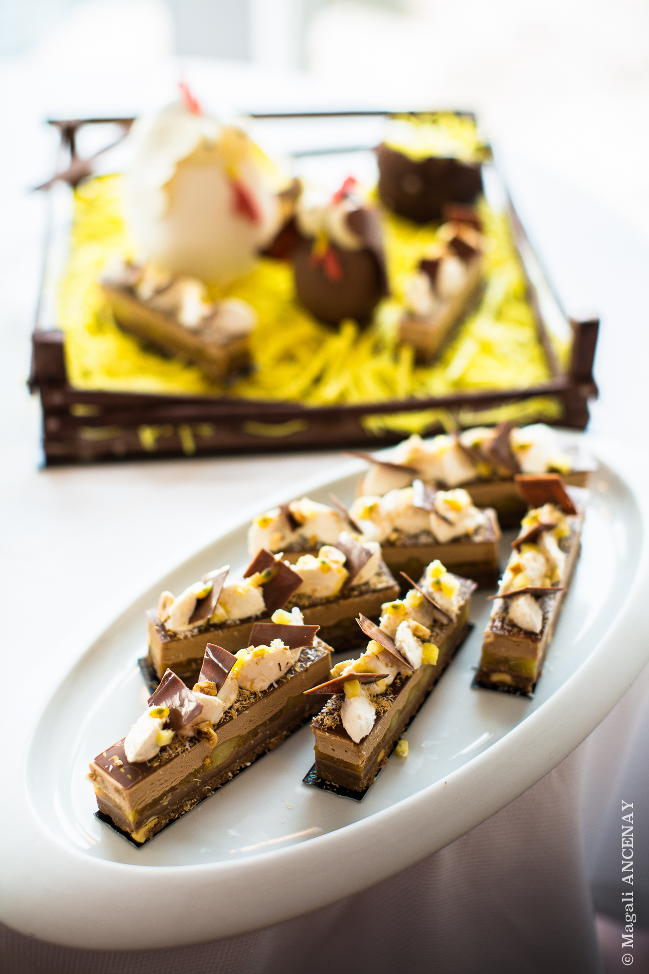 Les ateliers de nos pâtissiers, chocolatiers et glaciers tournent à plein régime, offrant des mariages plutôt surprenant comme, les épices, le thé, le poivron ou la salade frisée. Ces gâteaux à base cacao, du classique au plus élaboré, nous ont émerveillé tant par leur créativité et leur technicité que sur le plan gustatif. Accord des saveurs, faible teneur en sucre et légèreté étaient le maitre mot de tout un chacun. Pâques est un rendez-vous incontournable entre les français et le chocolat. « Le roi de la confiserie », c’est l’aliment qui plait le plus ! Il est synonyme de plaisir, il nous calme et donne le tournis, manger du chocolat c’est bon et çà fait du bien.