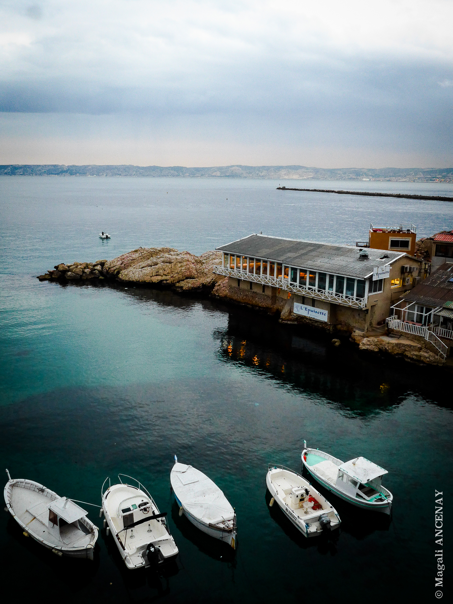 A quelques jours des fêtes de Pâques, le Club des Su(d)crés s’est réuni une nouvelle fois, dans un établissement de renon, offrant une vue extraordinaire sur la Méditerranée, l’Epuisette. Situé dans le Vallon des Auffes, ce petit port est un écrin préservé qui abrite de part et d’autre une cinquantaine de maisons de pêcheurs, de petits bateaux de pêche traditionnelle et quelques pointus typiques, dont les prises sont réservées aux restaurants locaux. Je ne pouvais pas me rendre à ce rendez-vous gourmand sans prendre des clichés de ce lieu pittoresque qui fait l’admiration de beaucoup de touristes. D’ailleurs, voici Lulu le pêcheur qui termine sa journée et qui m’invite gentiment à prendre quelques photos.
