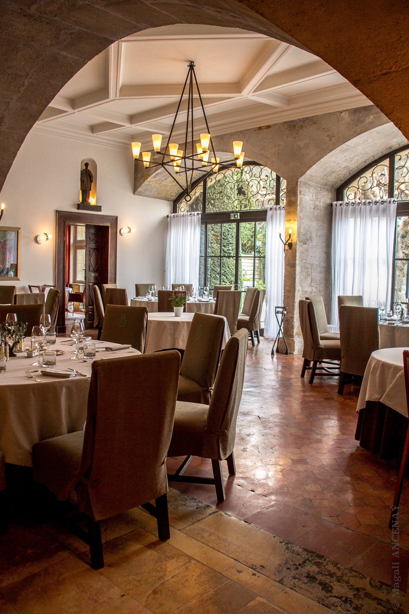 Je voulais vous parler des Maisons Baumanière depuis fort longtemps, mais mes escapades gourmandes m’ayant transporté aux quatre coins de notre belle région, il aura fallu le repas d’ouverture de cette nouvelle saison, pour que je vous retranscrive cette merveilleuse journée passée en immersion totale dans cette légendaire maison …L’Oustau de Baumanière. Des travaux d’aménagement menés par Geneviève Charial, apportent une note de modernité tout en conservant le charme provençal de la grande salle voutée, élégante, sobre, à la pierre blanche et lisse.