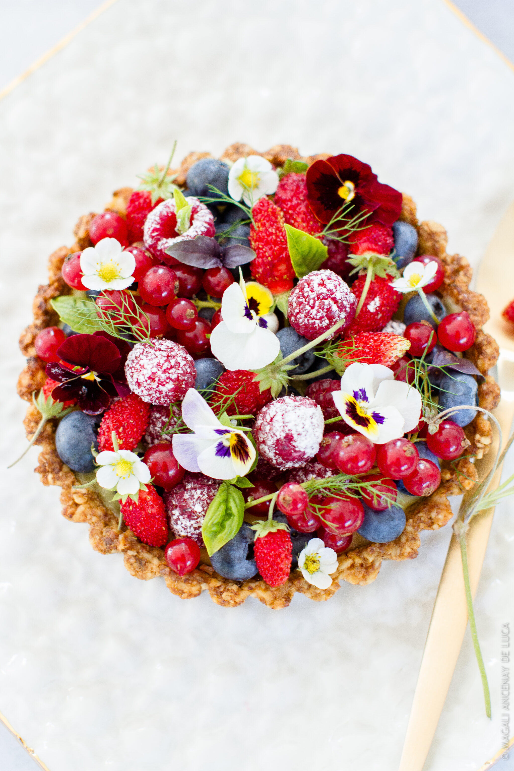 Tarte aux fruits rouges sur fond aux noix Vous pouvez préparer le fond aux noix et la crème citron la veille.