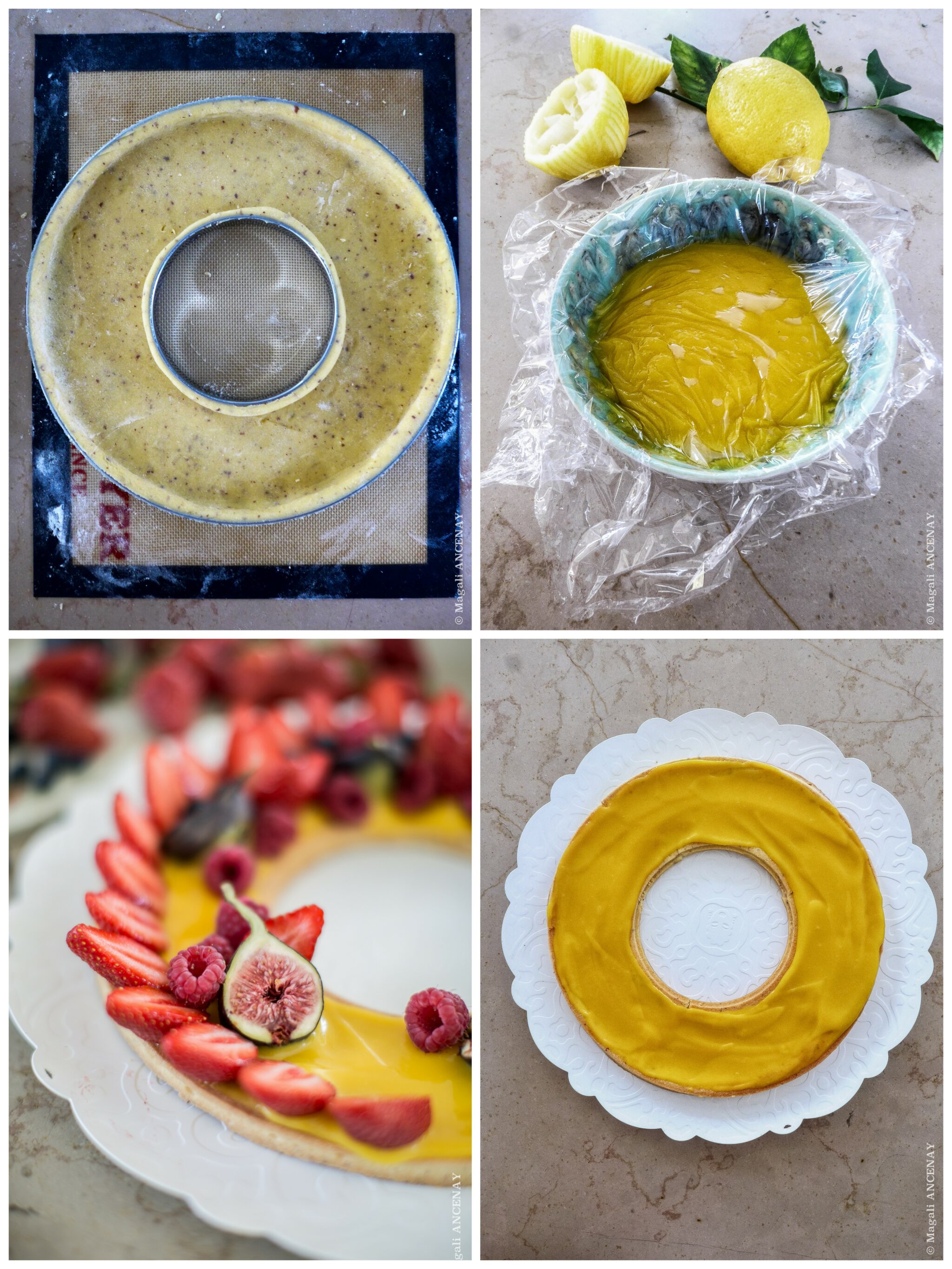 Décercler et garnir de crème aux citrons, lisser et disposer les fruits.