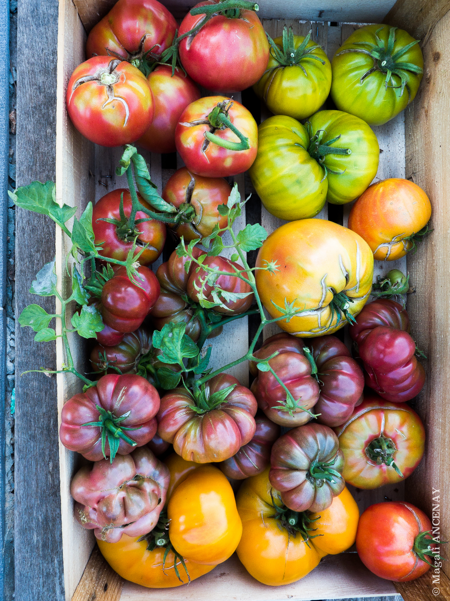 En conséquent, cette année s’annonce encore plus colorée que les autres années ….Rouges, Orange, Noires, Vertes, Roses, Bigarrées, Blanches ou Jaunes. En effet, ces exquises solanacées, procurent d’étonnants jeux de saveurs et de textures. Je sens que vous allez en prendre plein les yeux et nous plein les papilles. Désolée que je ne puisse vous faire partager ce plaisir, celui de déguster de belles et bonnes tomates anciennes.